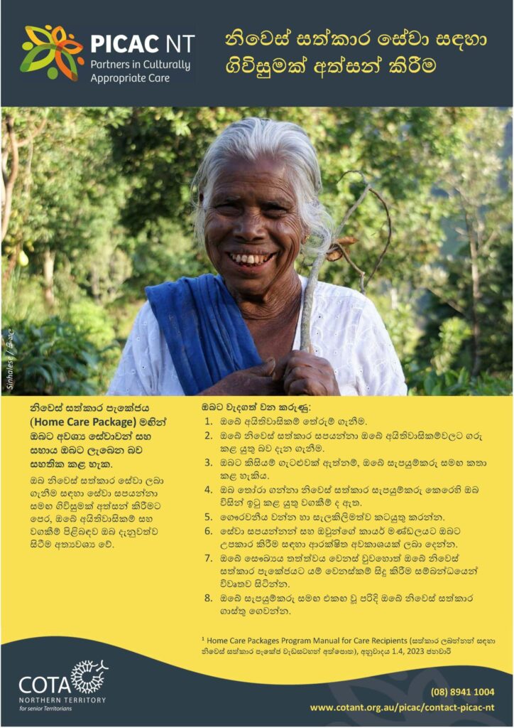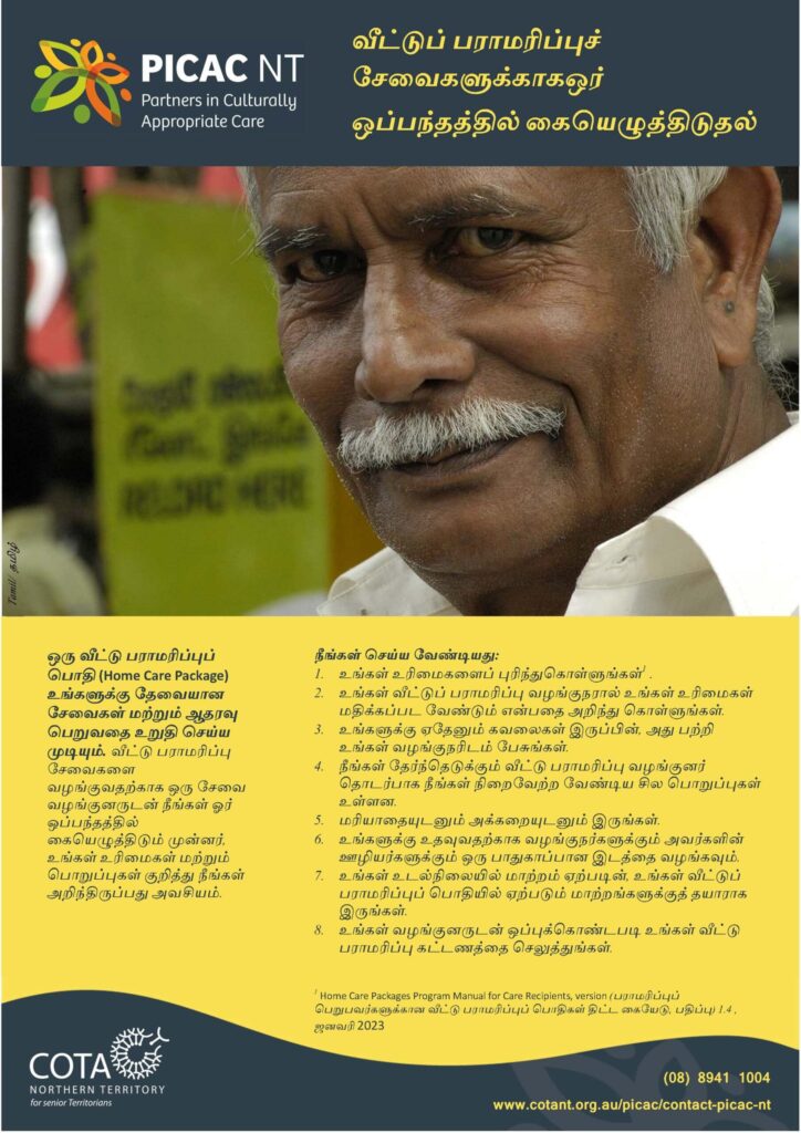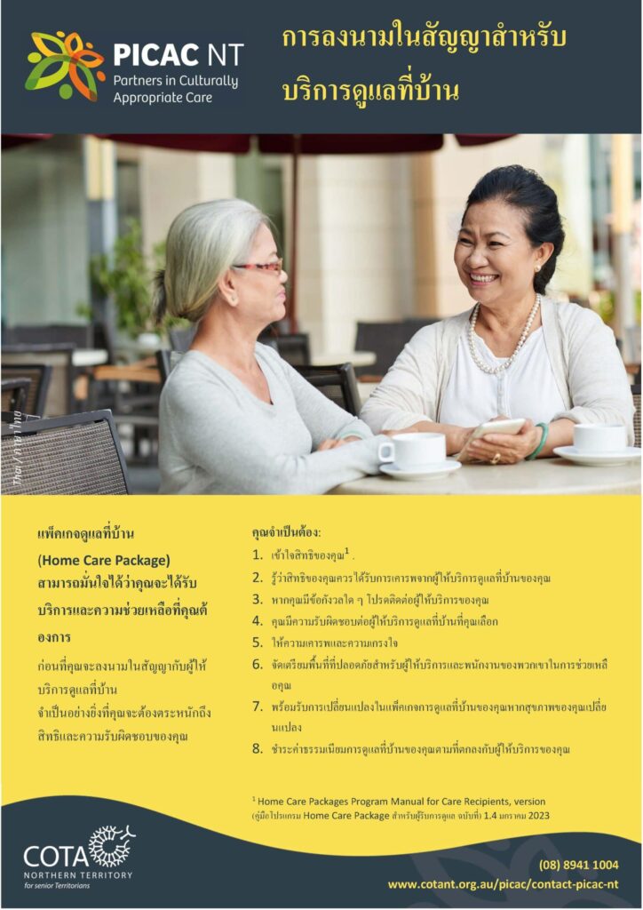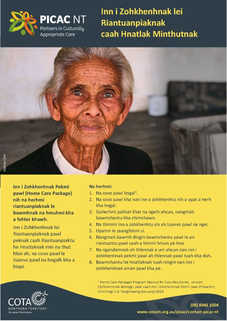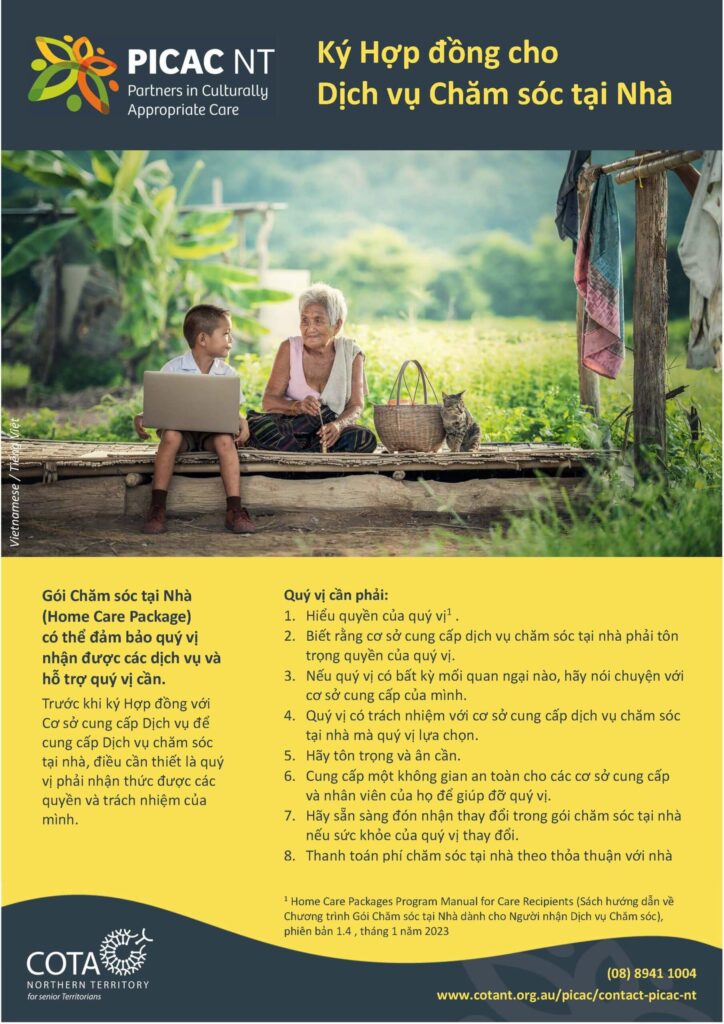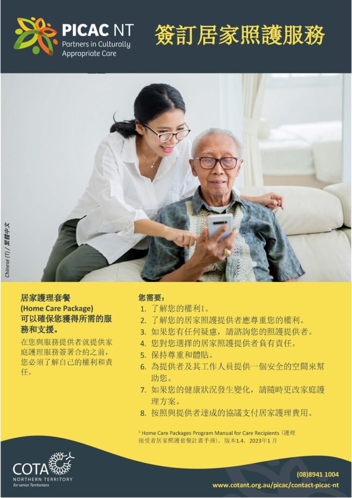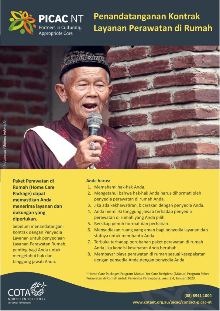 - Any of the resources produced by PICAC NT can be freely provided on request. *Aged care contract checklists can be translated free of charge, as can any contracts, flyers and administrative document used by service providers. Contact the PICAC Manager for help with translations.